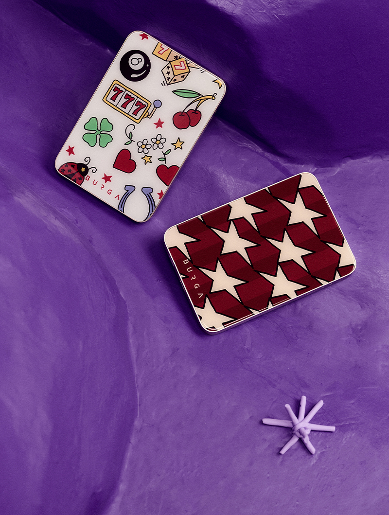 Trèfles à quatre feuilles, étoiles filantes, coccinelles et triple sept : les symboles qui vous portent chance, transformés en accessoires élégants. Une collection BURGA inspirée par vos grigris. Affichez-la fièrement.