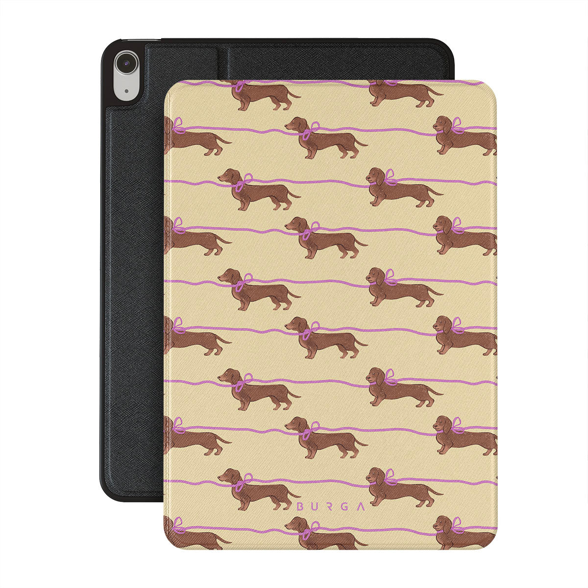 Cette collection est déclinée dans différents designs : des teckels avec des nœuds roses, chiens adorables.