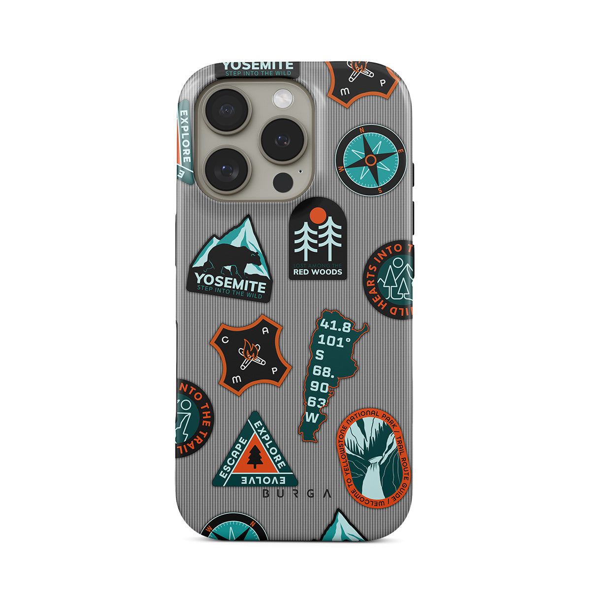 Ce modèle présente : écussons nature, montagne, aventure, vintage, badges