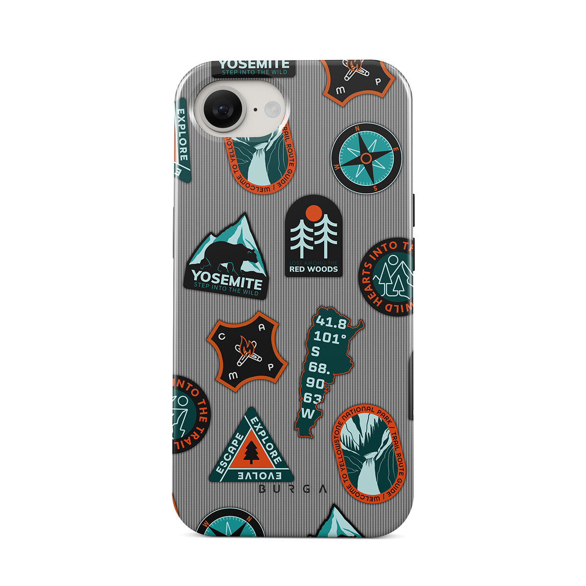 Ce modèle présente : écussons nature, montagne, aventure, vintage, badges