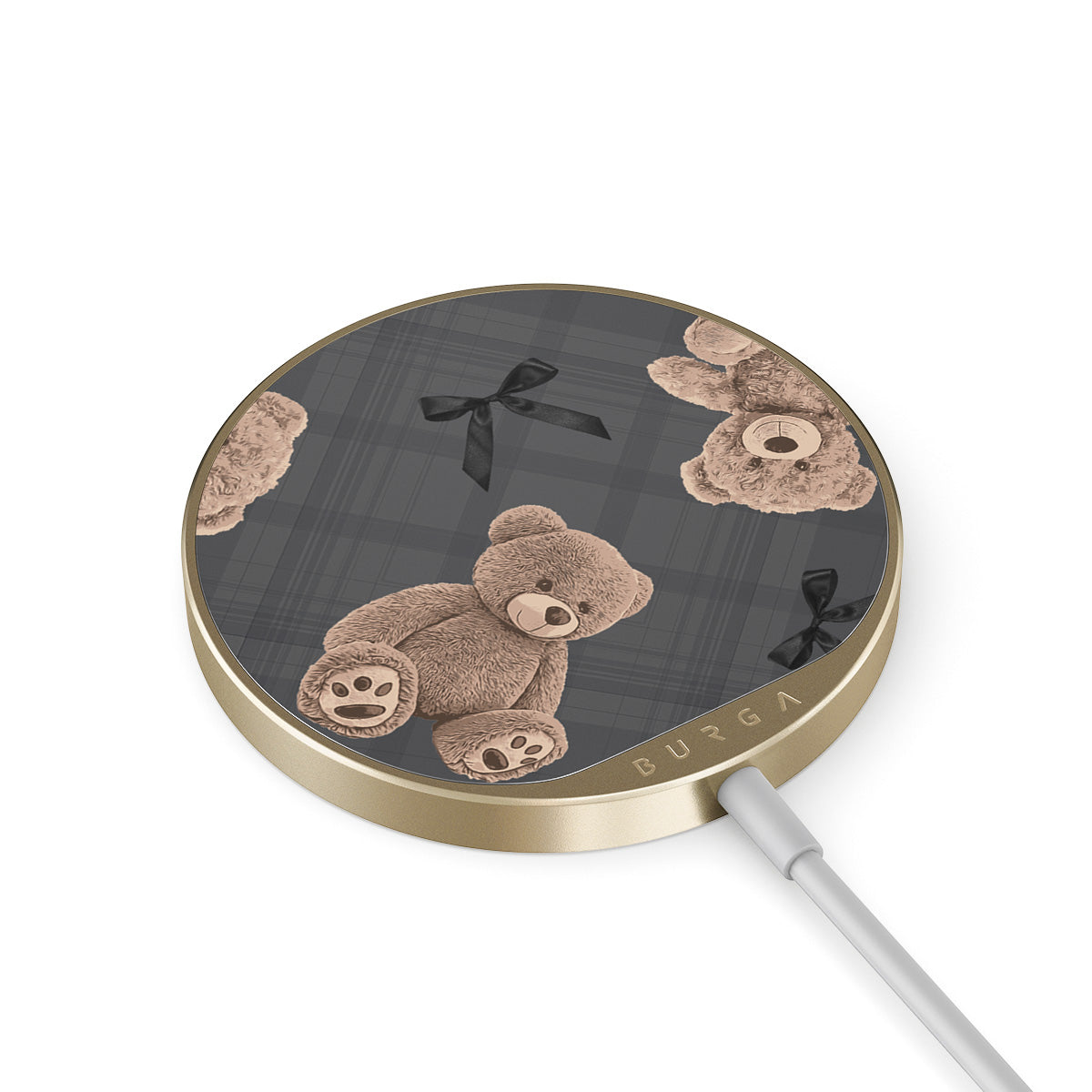 Le cordon intégré de 1,5 mètre vous permet de recharger facilement votre appareil où que vous soyez : au bureau, confortablement installé dans votre canapé ou en attendant votre vol dans le salon de l’aéroport. De plus, le dos en verre BURGA vous permet de choisir parmi plus de 500 imprimés, pour que votre chargeur soit aussi beau que votre coque.