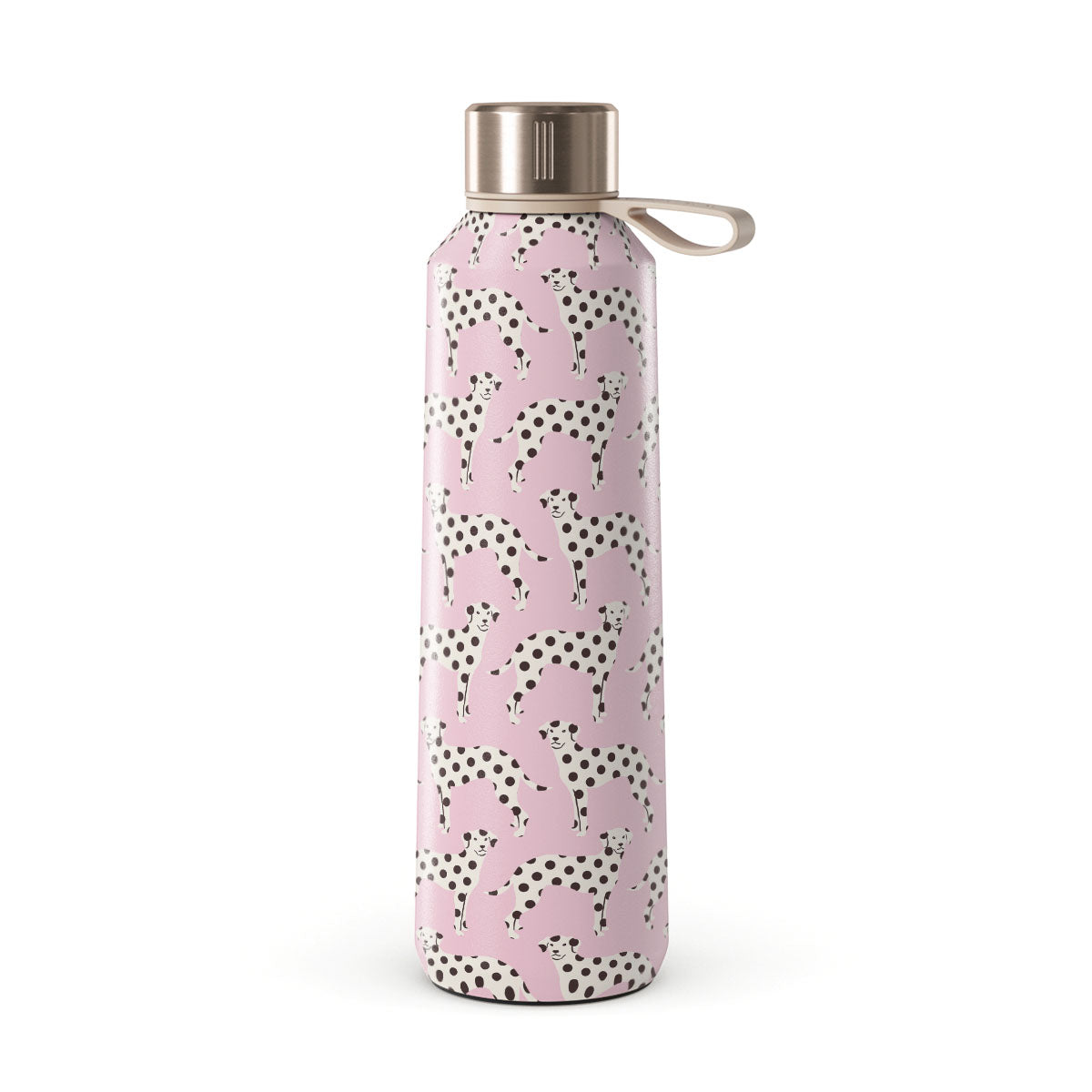 Cette collection est déclinée dans différents designs : des dalmatiens sur un fond rose bébé.