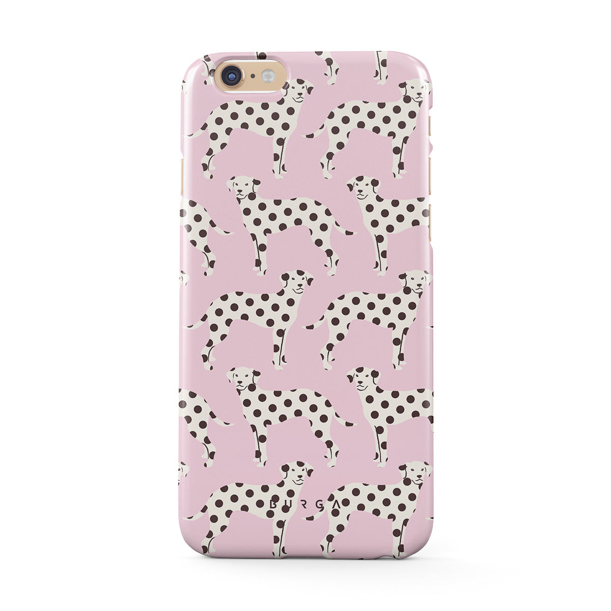 Cette collection est déclinée dans différents designs : des dalmatiens sur un fond rose bébé.