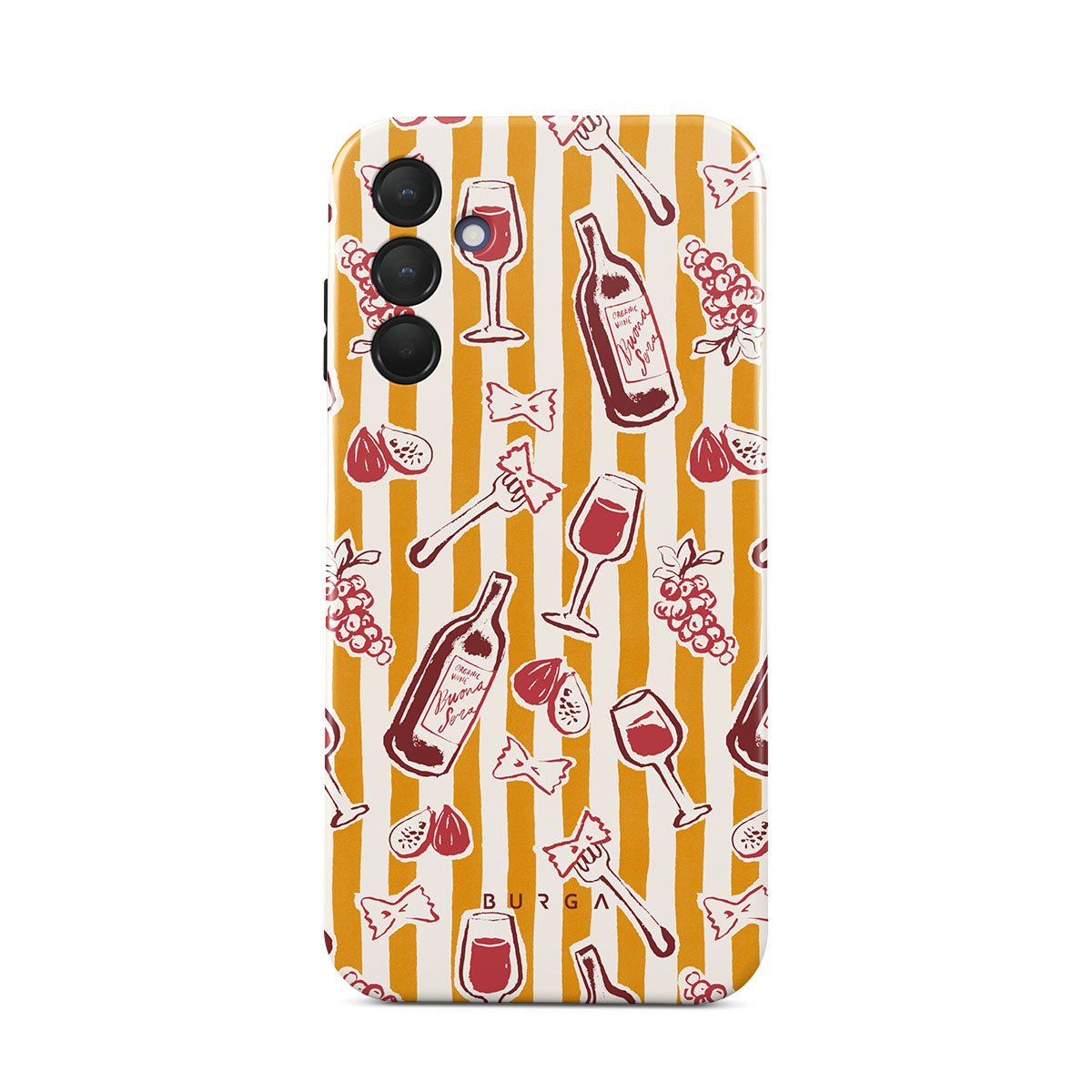 Cette collection est déclinée dans différents designs : fruits, figues, raisins, fourchettes, pâtes, vin, verre, rayures.