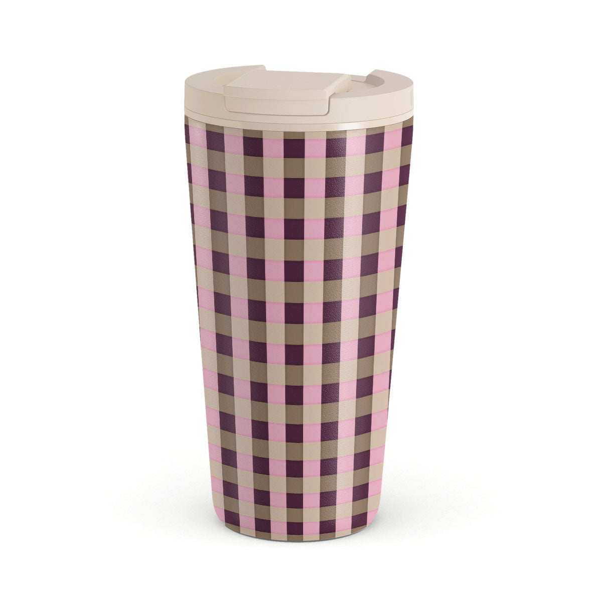 Cette collection est déclinée dans différents designs : un motif à carreaux rose et bordeaux, dans un style moderne.