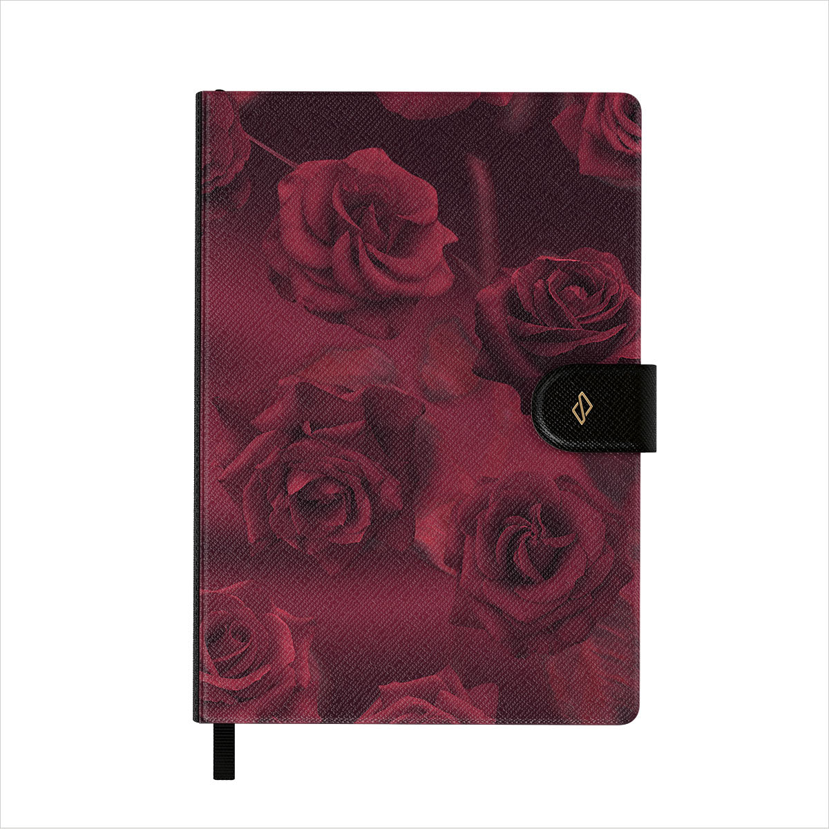 La couverture en simili cuir vegan est imprimée de motifs tendances BURGA. Le carnet est aussi doté d’un élégant ruban marque-page noir.