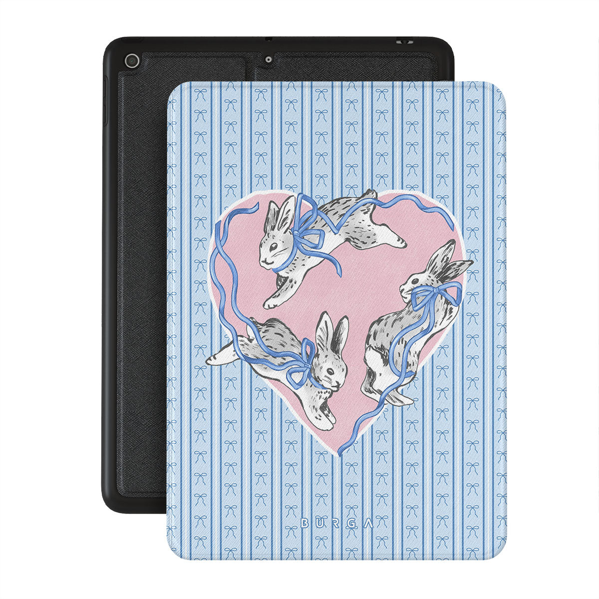 Cette collection est déclinée dans différents designs : lapins blancs, cadre en cœur, rayures bleues