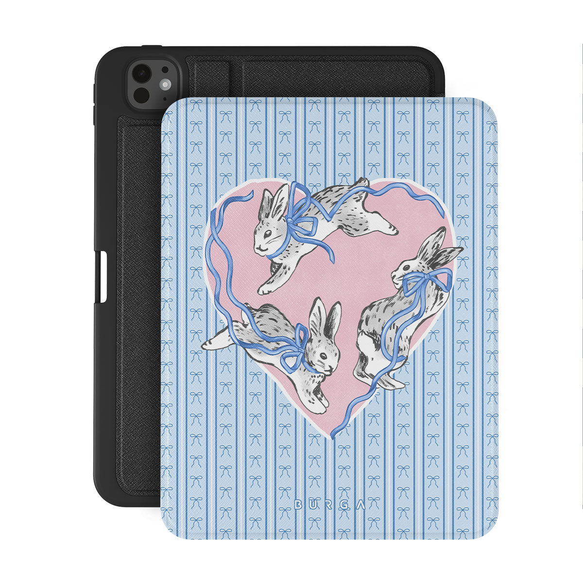 Cette collection est déclinée dans différents designs : lapins blancs, cadre en cœur, rayures bleues
