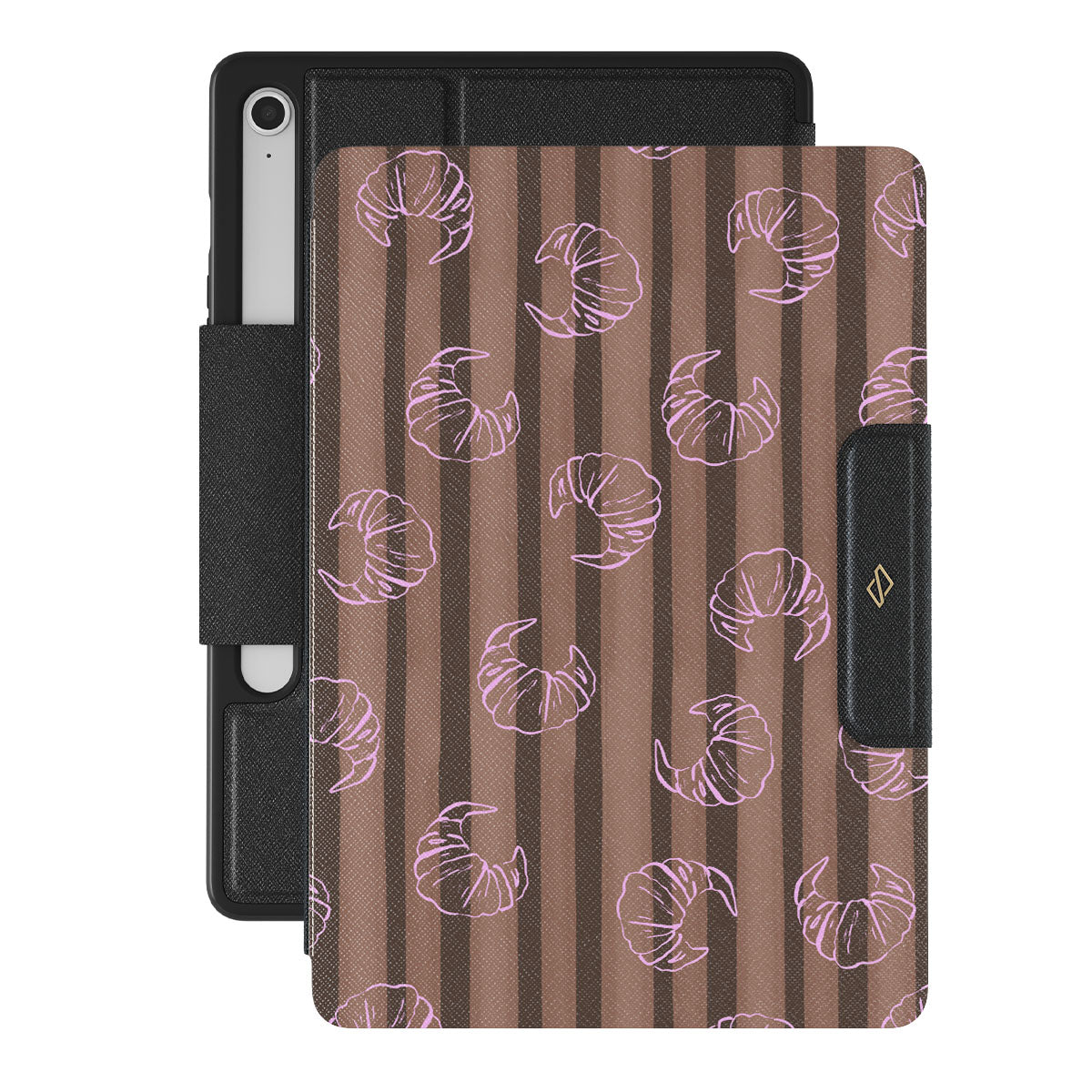 Ce modèle présente : rayures verticales, rayures brunes et beiges, croissants