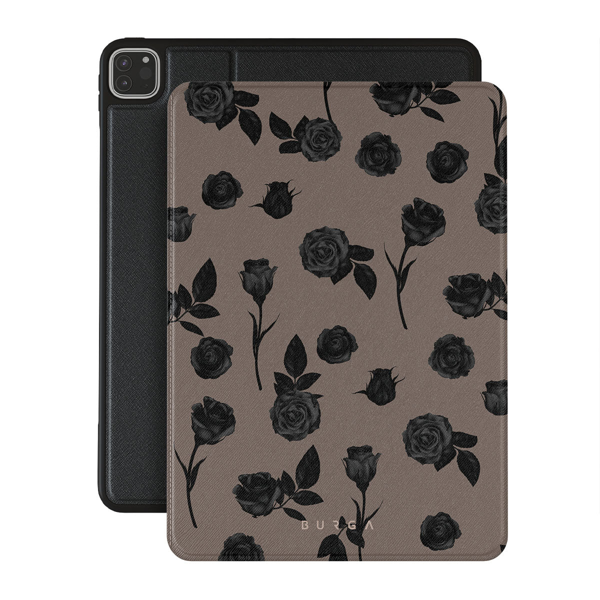 Ce design présente : des roses noires, des tons terreux, des détails floraux, des fleurs sombres.