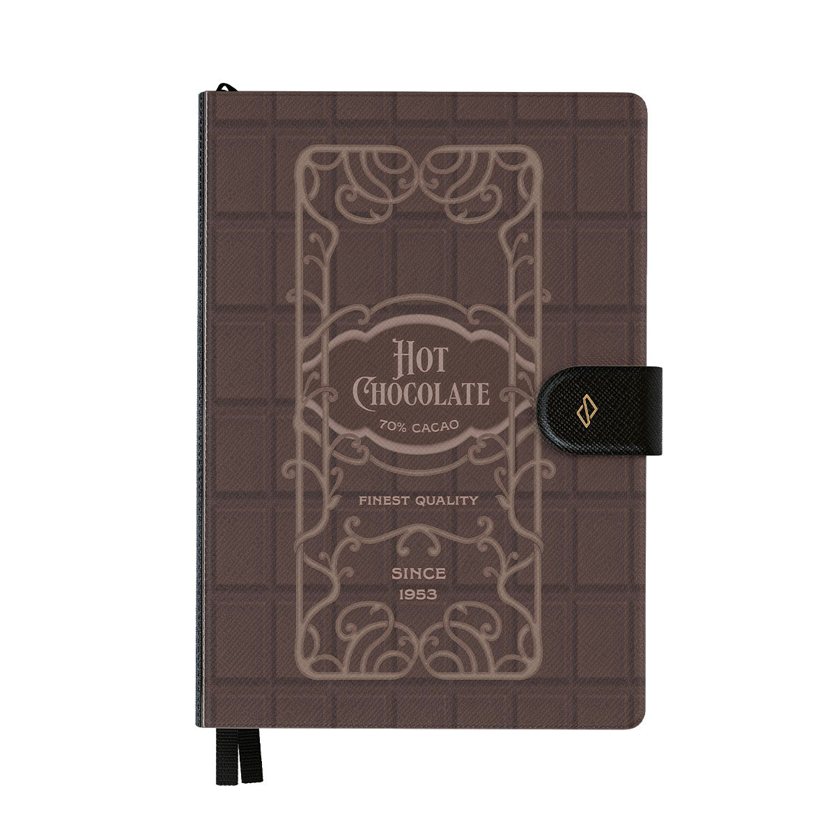 Cette collection est déclinée dans différents designs : étiquette chocolat chaud, design chocolat brun, style d'emballage rétro