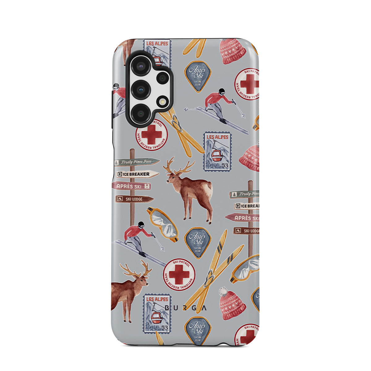 Cette collection est déclinée dans différents designs : affiche de ski vintage, station de ski rétro, illustration de renne, design de remontée mécanique, motif alpin, sports d'hiver, style classique de chalet de ski, graphismes de station de montagne