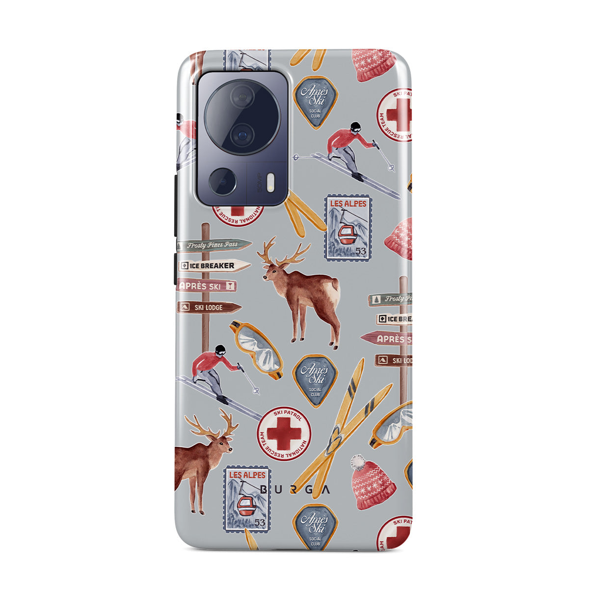 Cette collection est déclinée dans différents designs : affiche de ski vintage, station de ski rétro, illustration de renne, design de remontée mécanique, motif alpin, sports d'hiver, style classique de chalet de ski, graphismes de station de montagne
