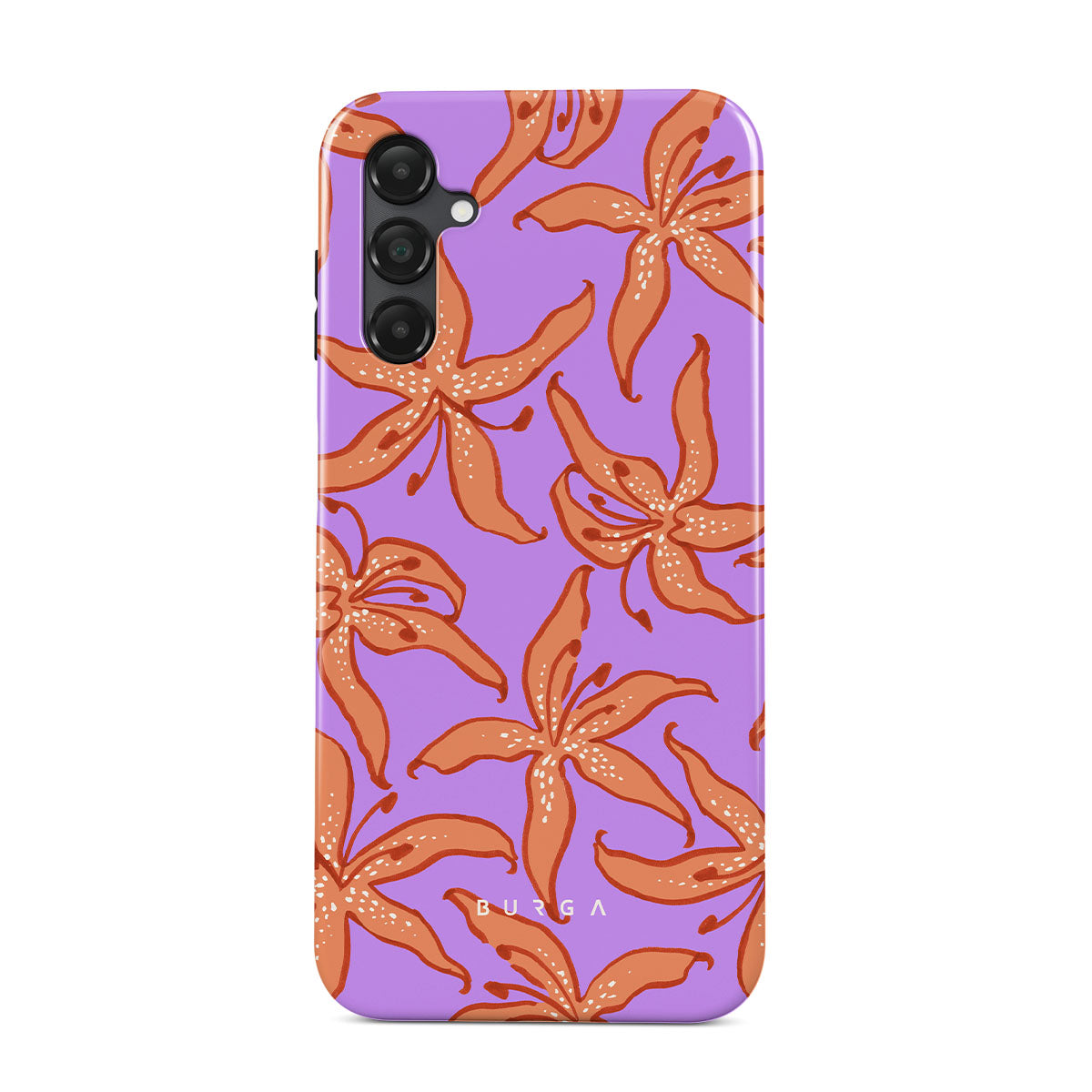 Cette collection est déclinée dans différents designs : lys orange, fond violet.