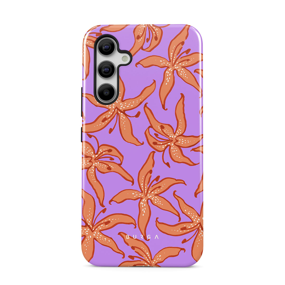 Cette collection est déclinée dans différents designs : lys orange, fond violet.