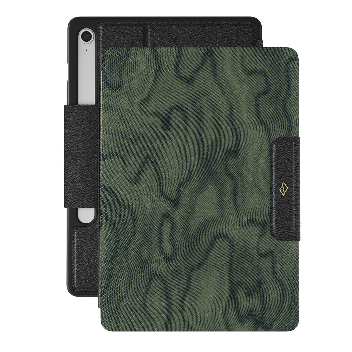 Ce modèle présente : vert foncé, lignes ondulées, motif fluide, motif abstrait