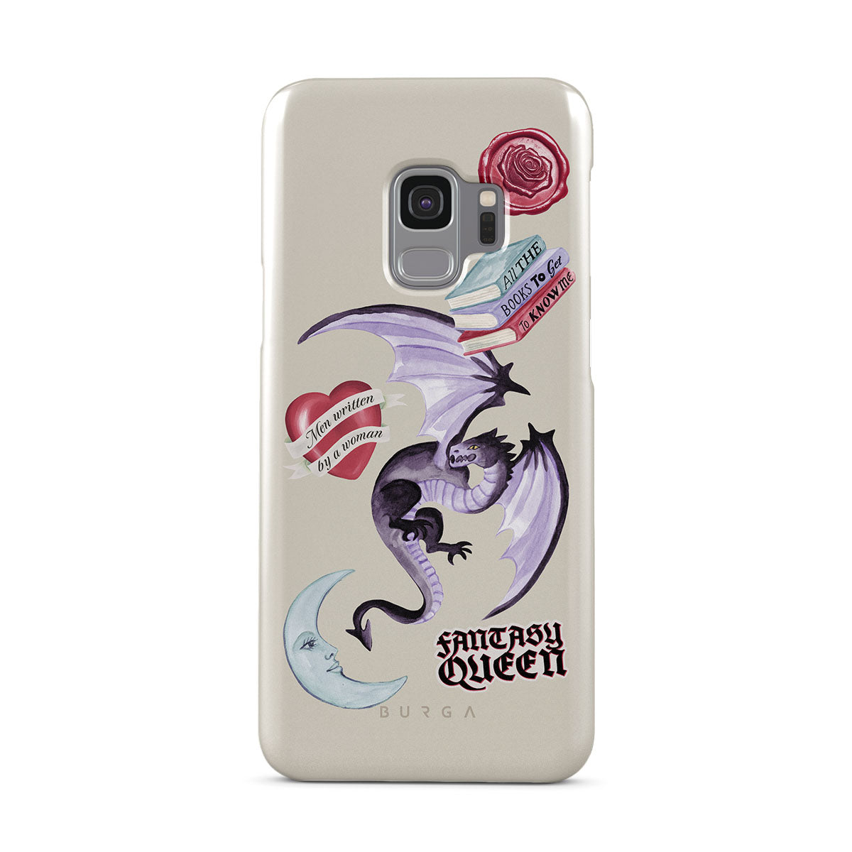 Cette collection est déclinée dans différents designs : dragon violet, sticker « Fantasy Queen », croissant de lune, cachet de cire violet, cœur avec message, livres.