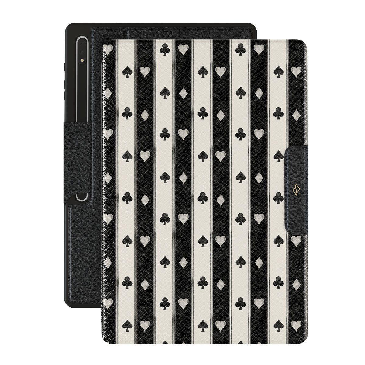Cette collection est déclinée dans différents designs : rayures noires et blanches, cœurs, symboles de cartes à jouer, style vintage