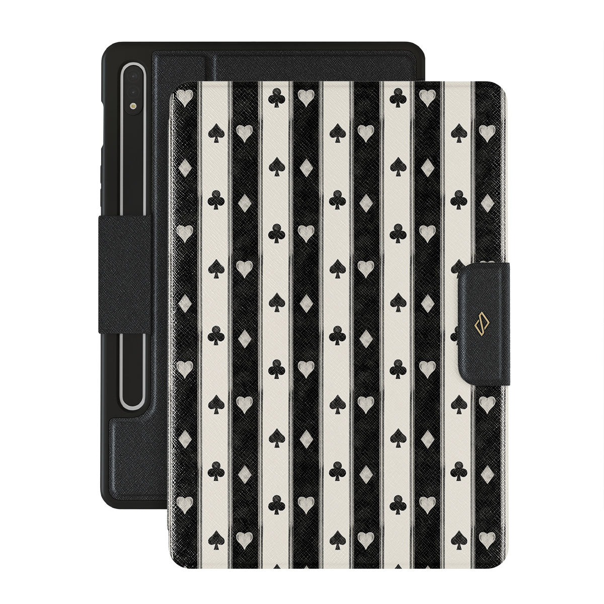 Cette collection est déclinée dans différents designs : rayures noires et blanches, cœurs, symboles de cartes à jouer, style vintage