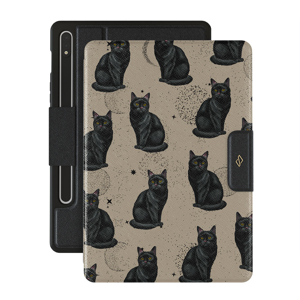 Cette collection est déclinée dans différents designs : des chats noirs, des symboles mystiques.