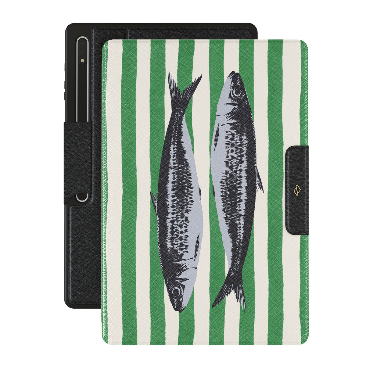 Cette collection est déclinée dans différents designs : Sardines, rayures vertes, motifs océaniques.