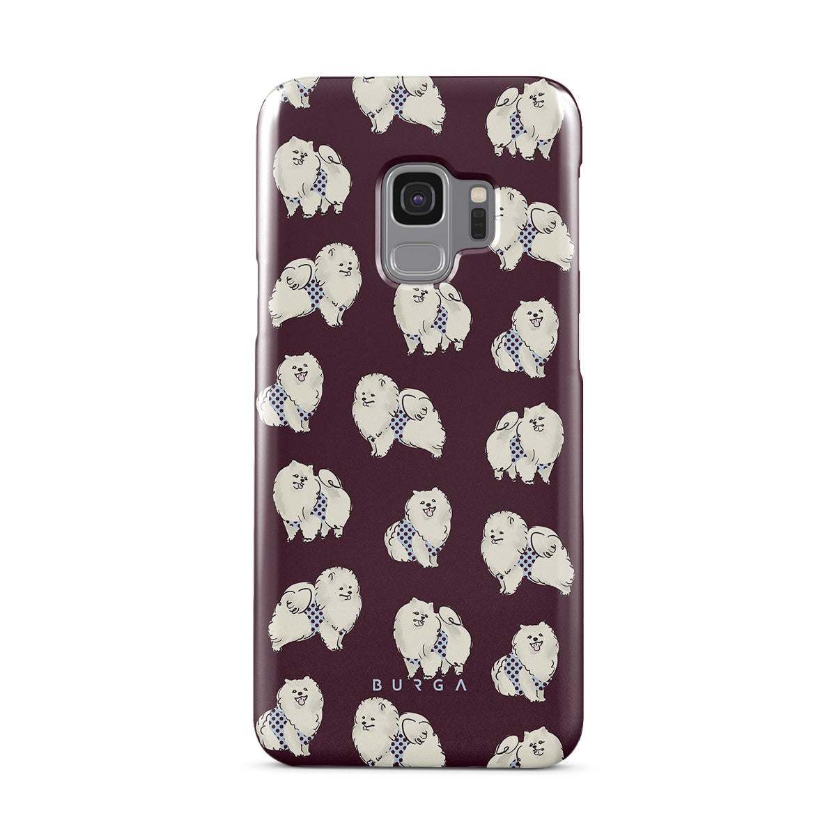 Cette collection est déclinée dans différents designs : des chiens blancs et duveteux sur un fond bordeaux foncé, des caniches, des animaux de compagnie.