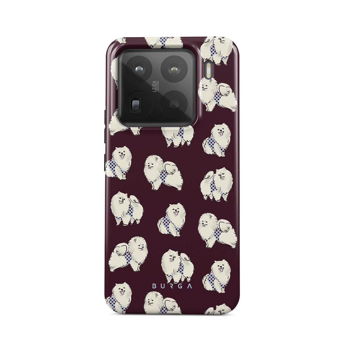 Cette collection est déclinée dans différents designs : des chiens blancs et duveteux sur un fond bordeaux foncé, des caniches, des animaux de compagnie.