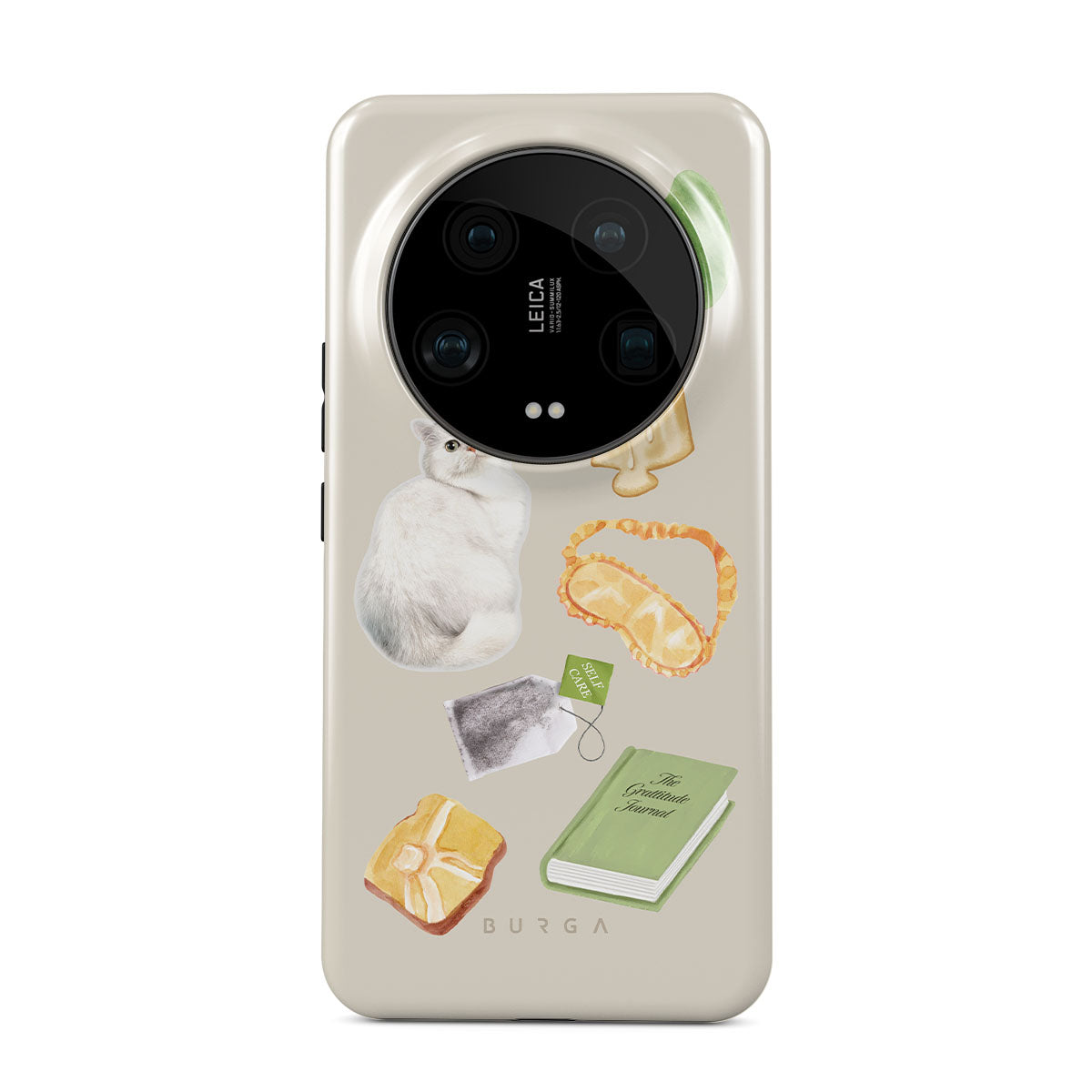 Cette collection est déclinée dans différents designs : chat blanc, livre vert, bougie, barre de Gua Sha, masque de sommeil, sachet de thé, cristal jaune.