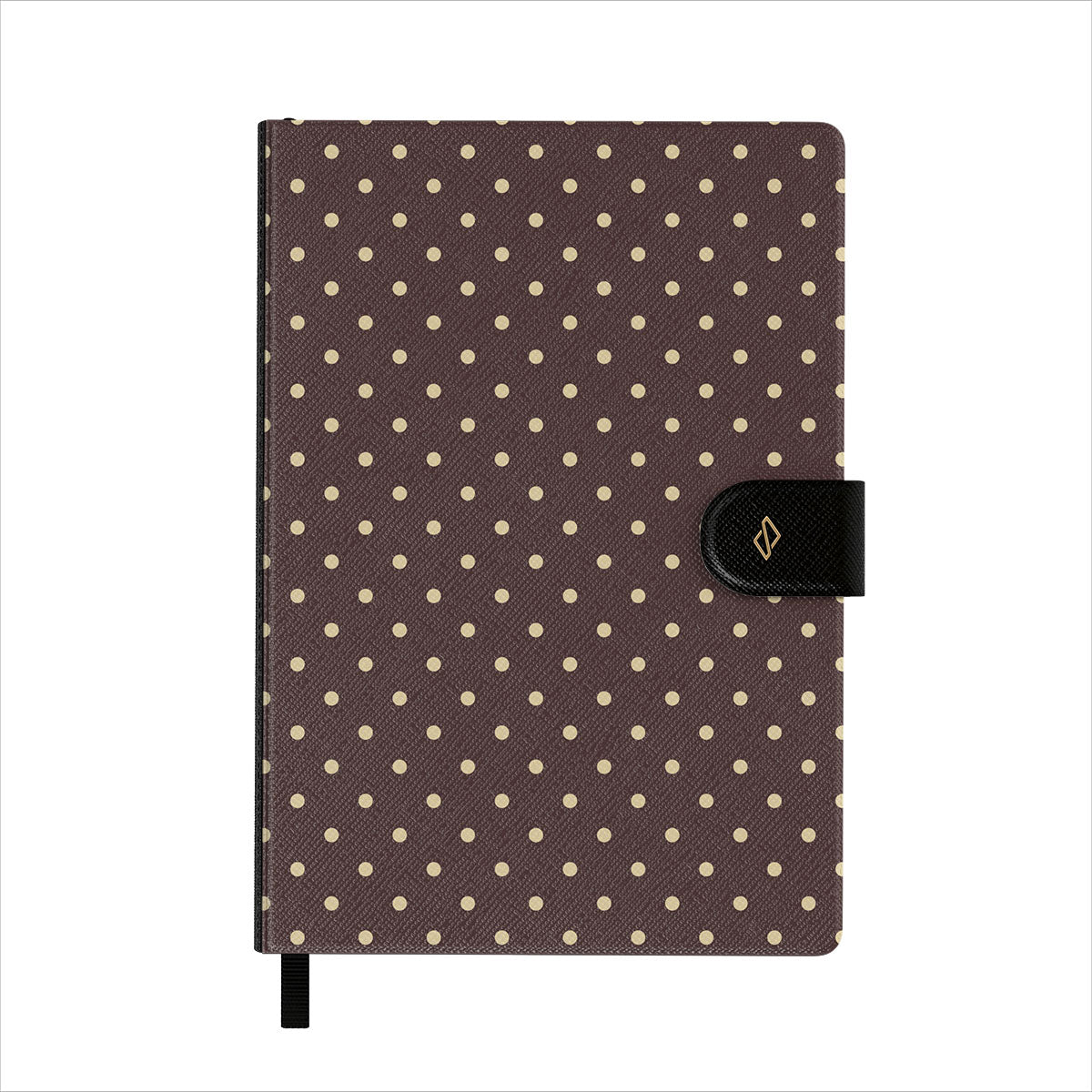 La couverture en simili cuir vegan est imprimée de motifs tendances BURGA. Le carnet est aussi doté d’un élégant ruban marque-page noir.