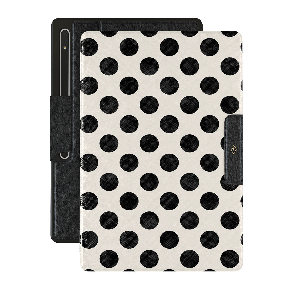 Cette collection est déclinée dans différents designs : des pois noirs sur un fond blanc épuré.