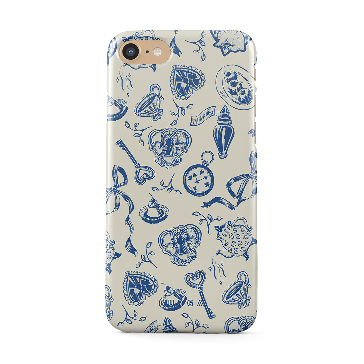 Cette collection est déclinée dans différents designs : tasses à thé, théières, montres à gousset, clé, cœurs, céramique, motif bleu et blanc