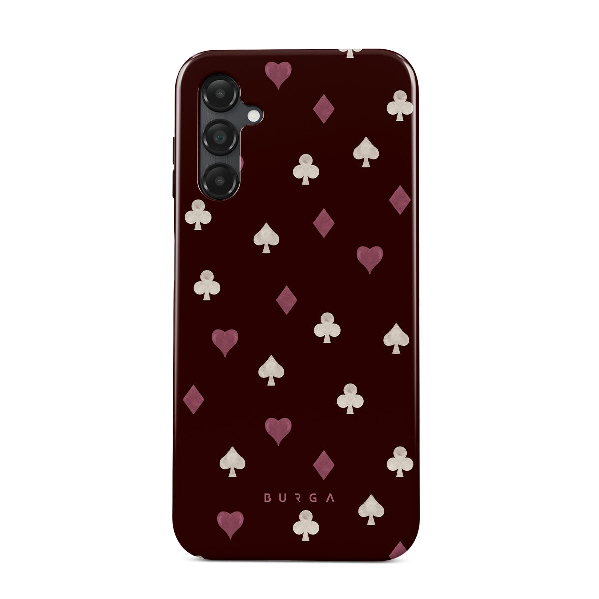 Cette collection est déclinée dans différents designs : symboles de cartes à jouer, cœurs, piques, carreaux, trèfles, fond bordeaux