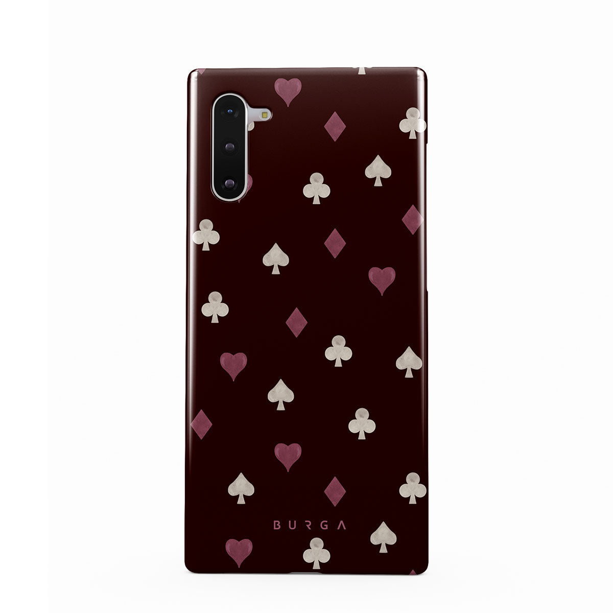 Cette collection est déclinée dans différents designs : symboles de cartes à jouer, cœurs, piques, carreaux, trèfles, fond bordeaux