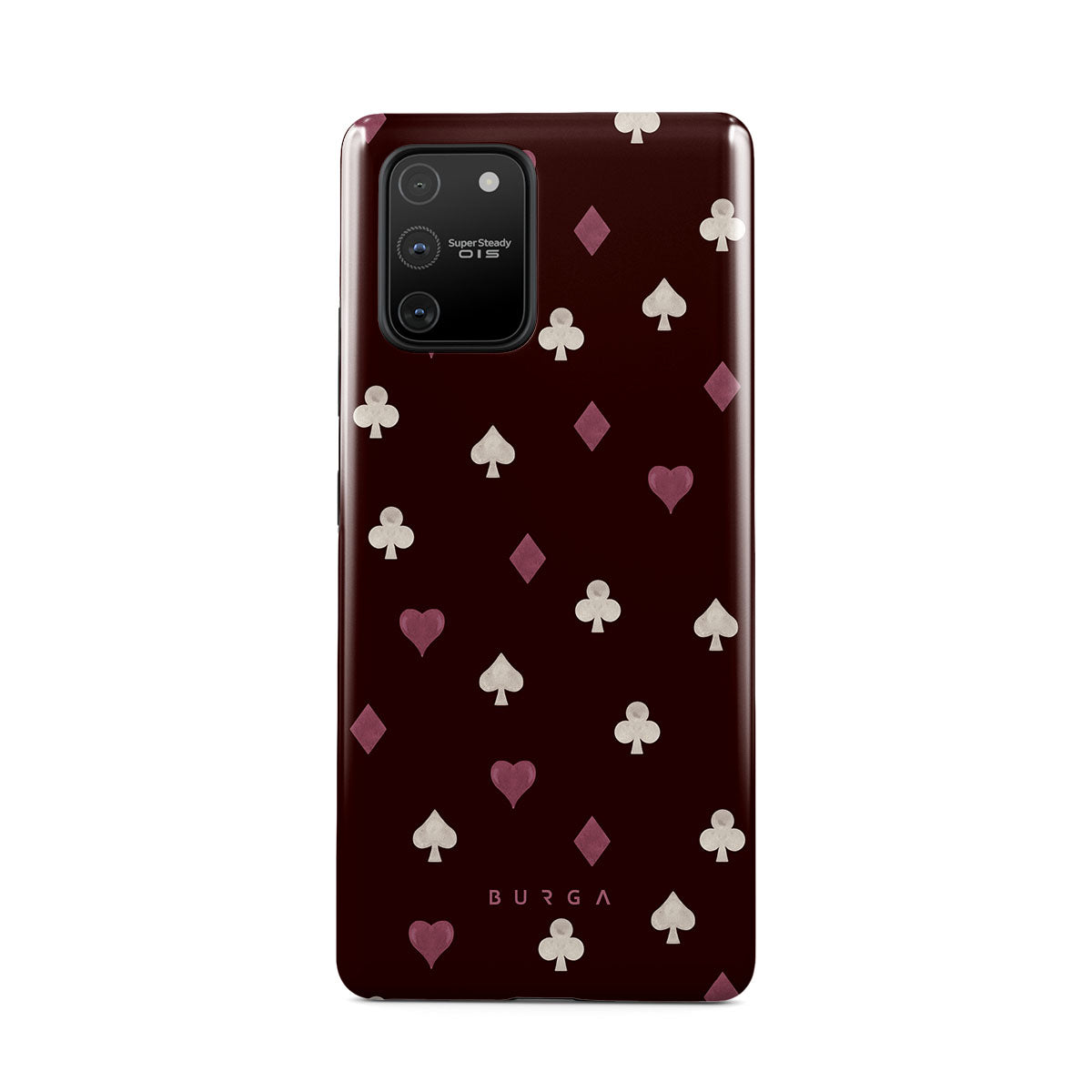 Cette collection est déclinée dans différents designs : symboles de cartes à jouer, cœurs, piques, carreaux, trèfles, fond bordeaux