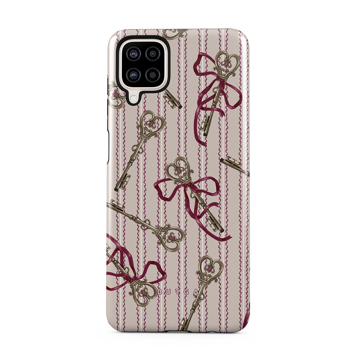 Cette collection est déclinée dans différents designs : clés anciennes, nœuds, rubans roses, fond rayé