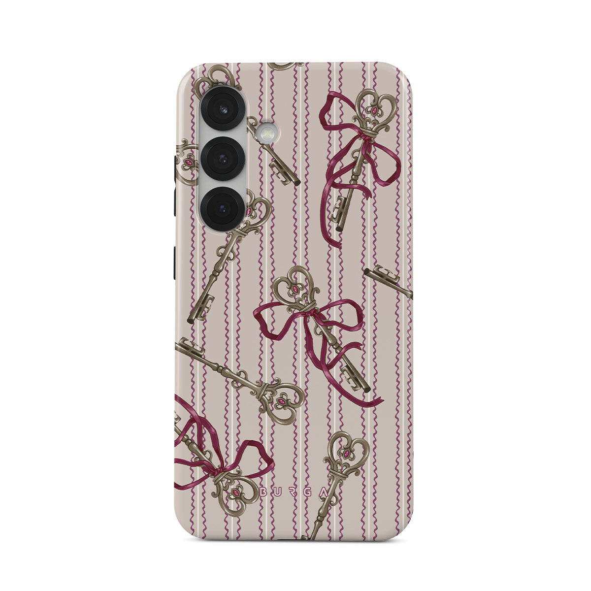 Cette collection est déclinée dans différents designs : clés anciennes, nœuds, rubans roses, fond rayé