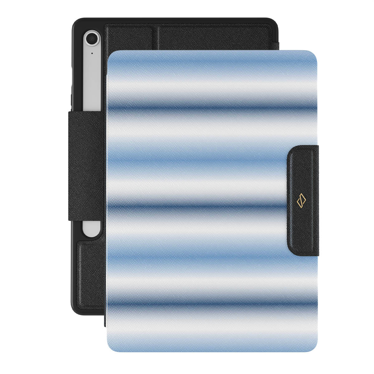 Ce modèle présente : dégradé bleu clair, rayures horizontales blanches et bleues